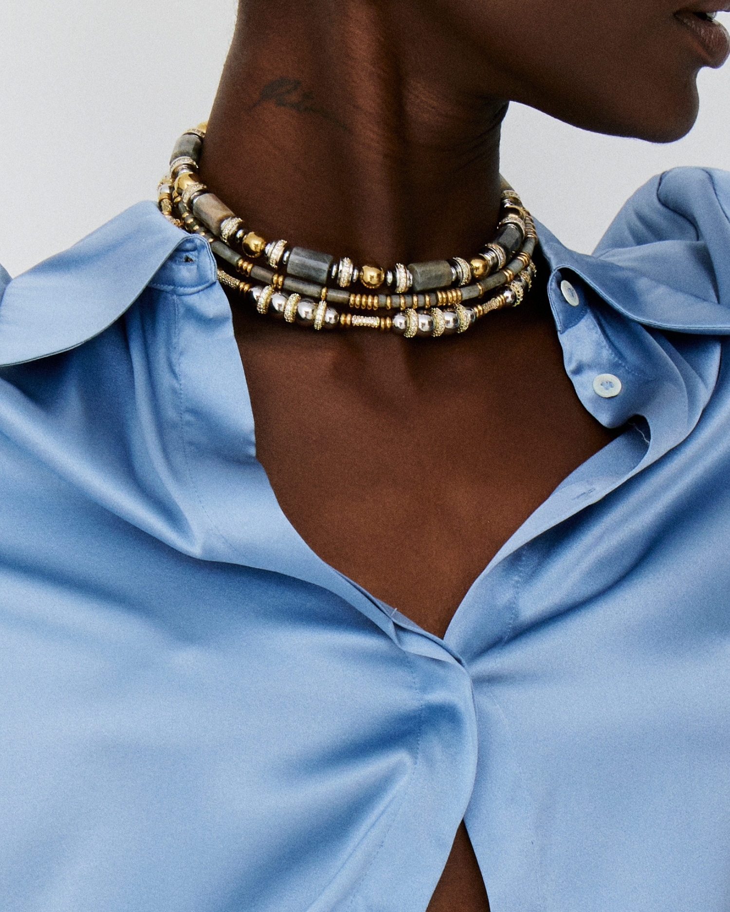 Matériaux : Laiton, perles de labradorite, oxydes de zirconium