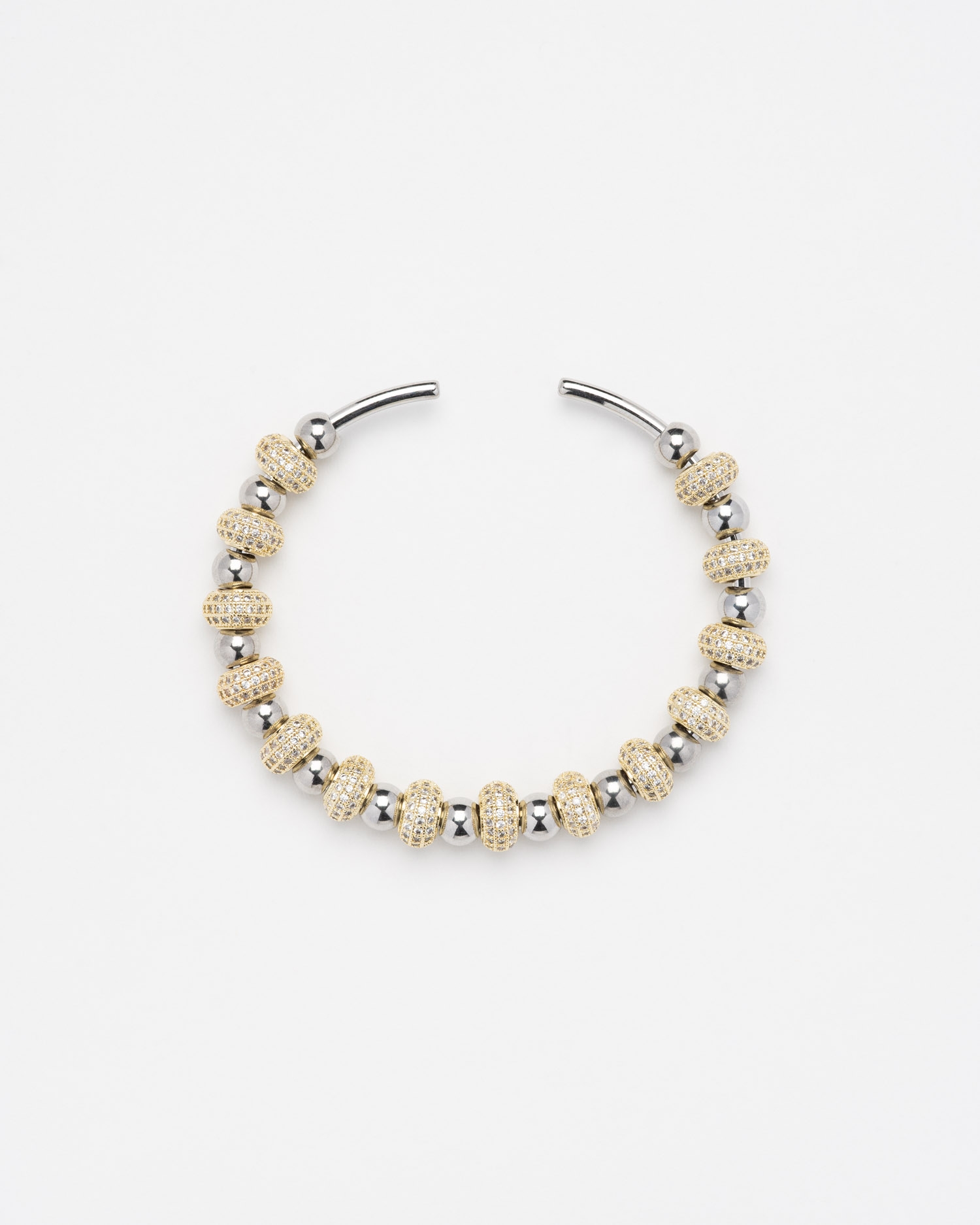 Bracelet jonc rigide en perles argentées avec oxydes de zirconium.