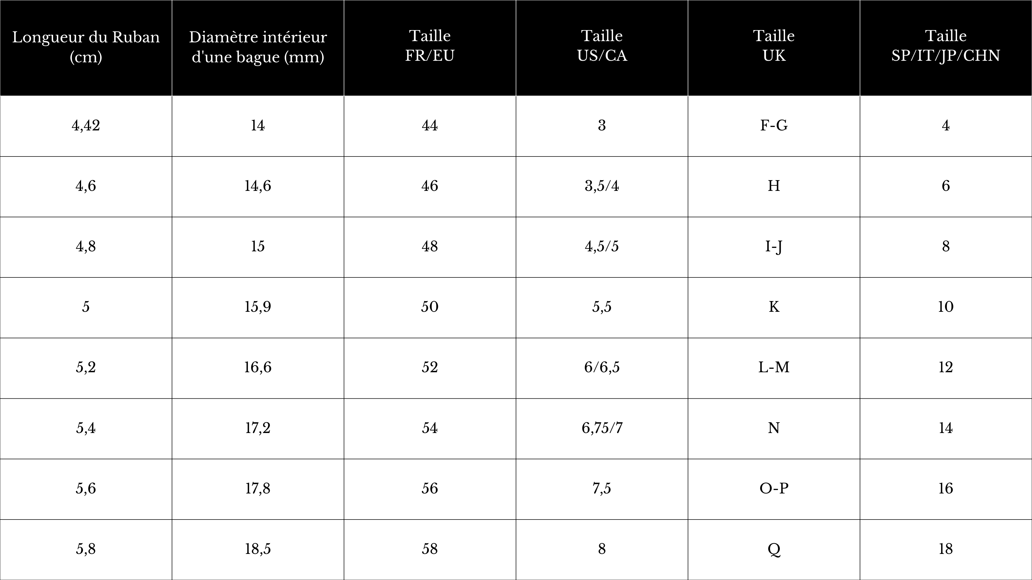 Pour une bague large, nous recommandons parfois de prendre une taille au-dessus.