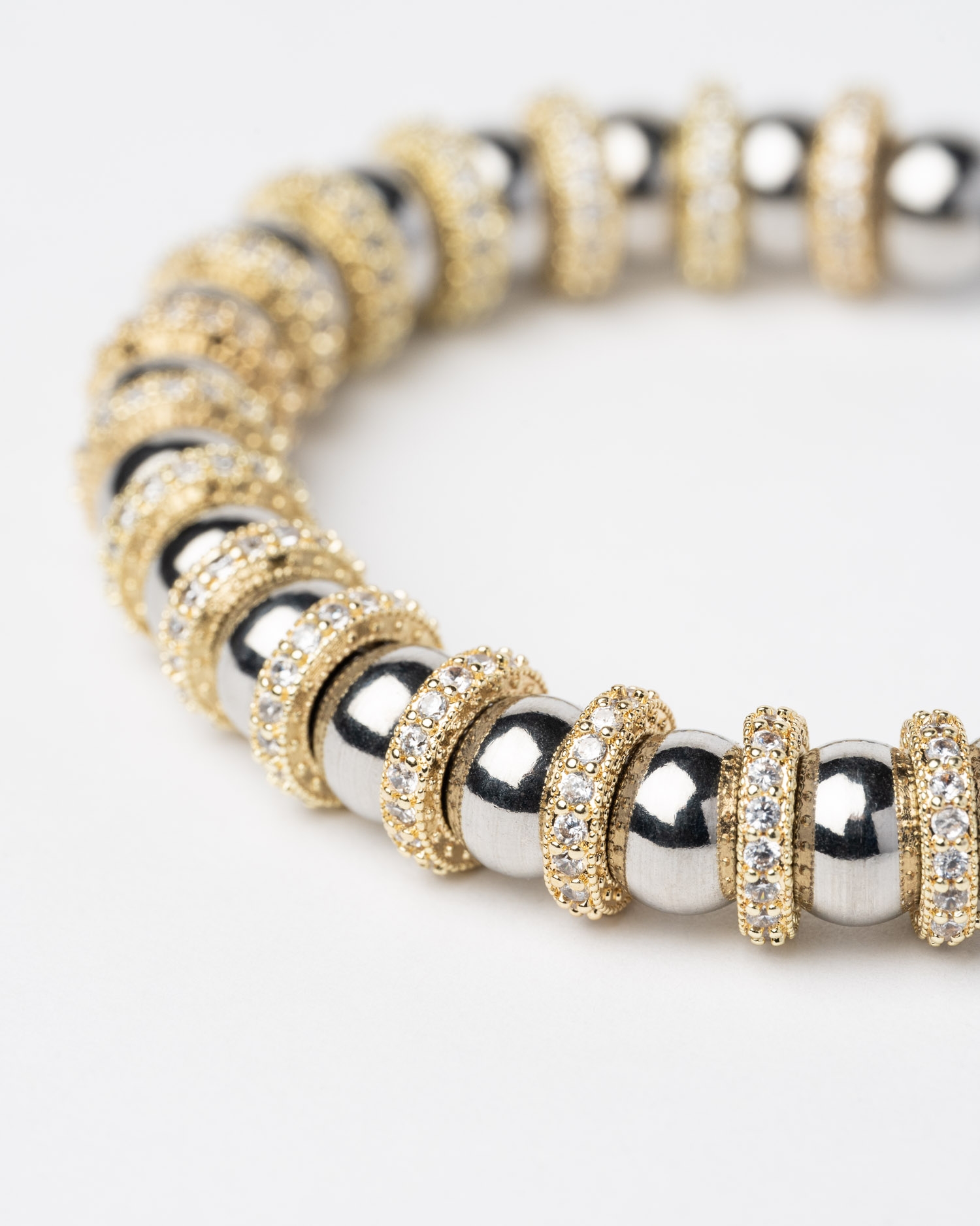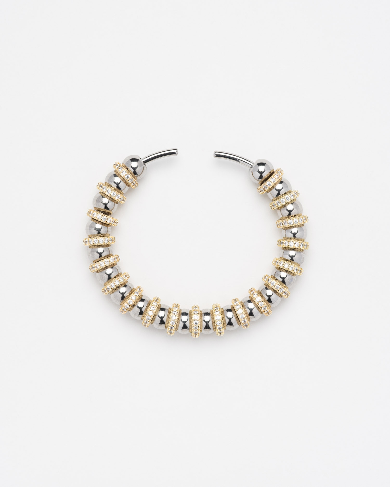 Bracelet jonc rigide en perles argentées avec oxydes de zirconium.